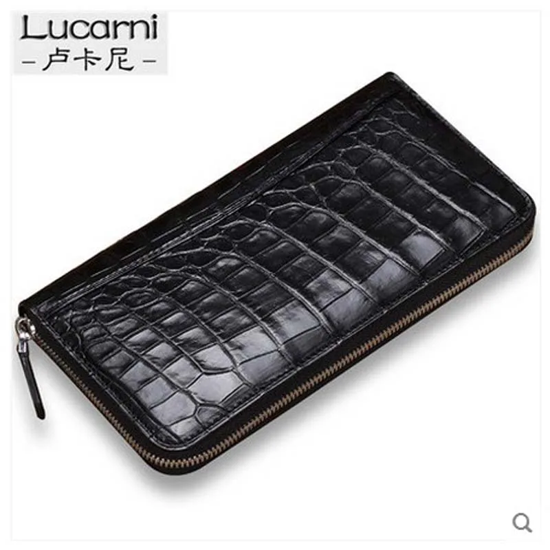 lukani crocodile belly Men's clutch bag crocodile leather man purse zipper long men bag