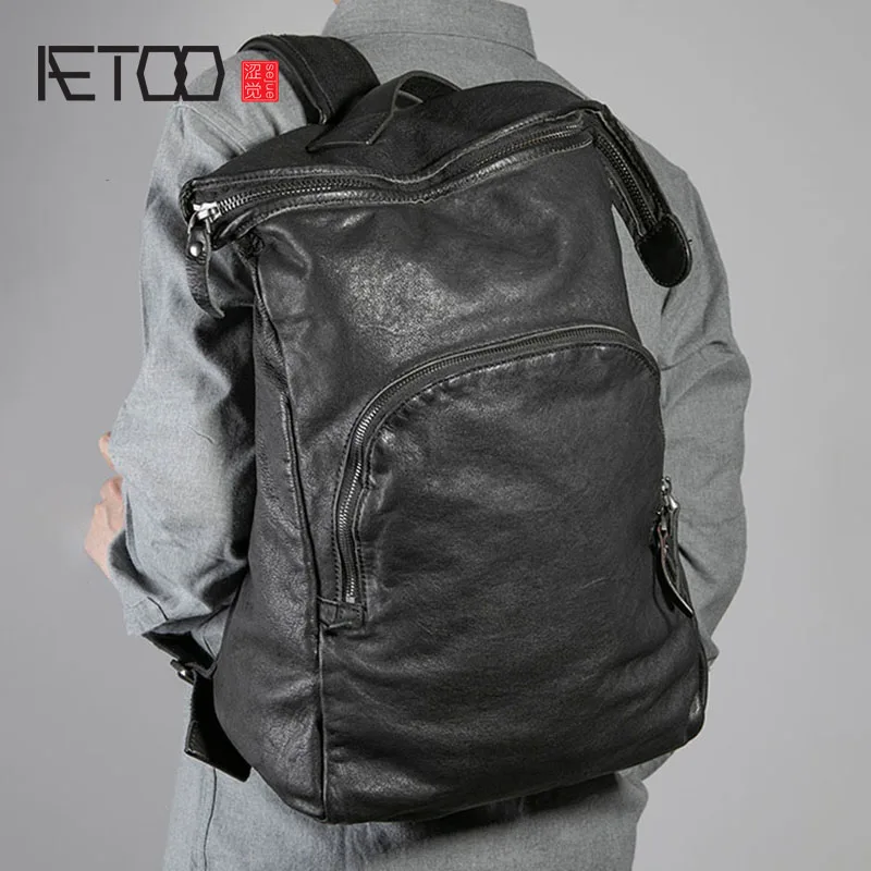 Review Top AETOO Leather slant bag male head leather fashion backpack multi-functional leisure student travel