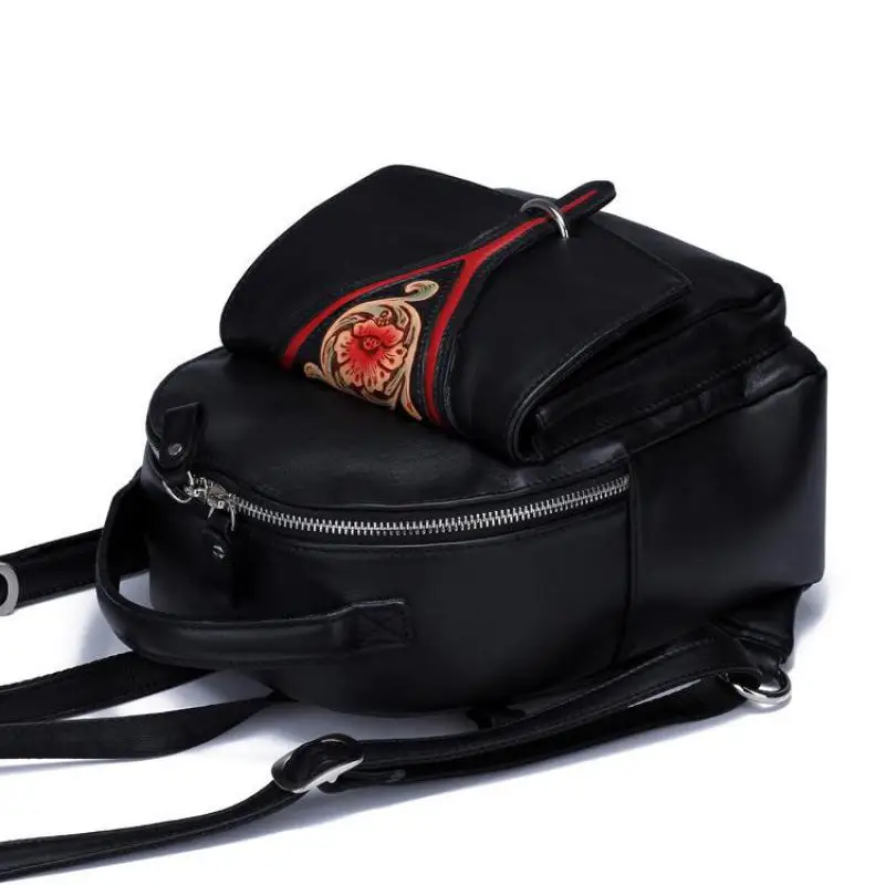 Johnature Handmade Vintage Backpack Women Mini Bag Pack 2020 New Leisure Genuine Leather Carving Sm