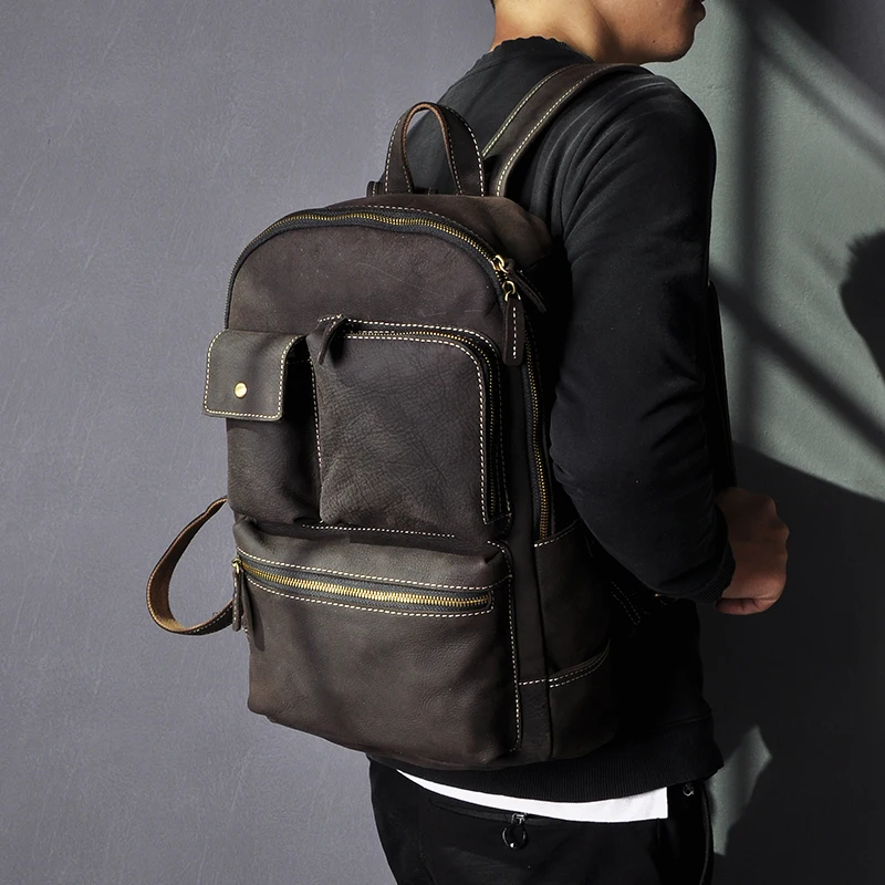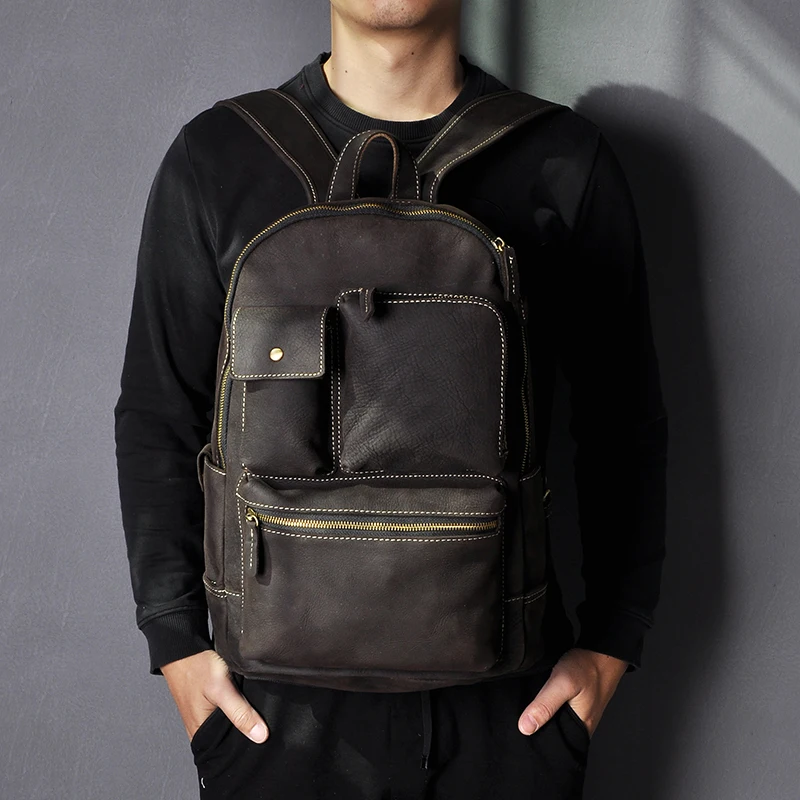 Men Quality Leather Fashion Large Travel University College School Bag Designer Male Backpack Daypa