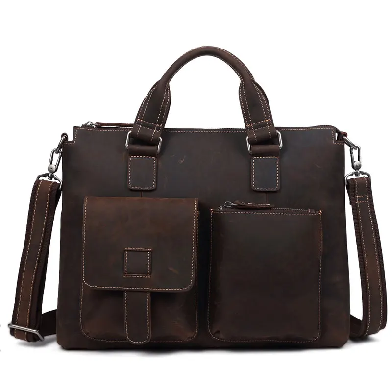 New 2019 Vintage Men's Cow Genuine Leather Briefcase Crazy Horse Leather Messenger Bag Male Laptop