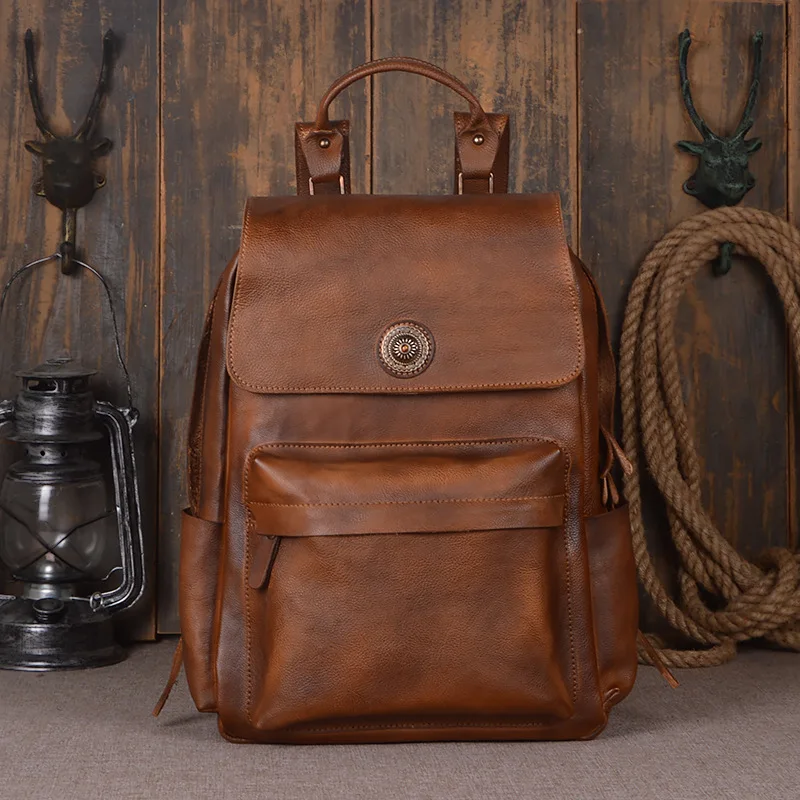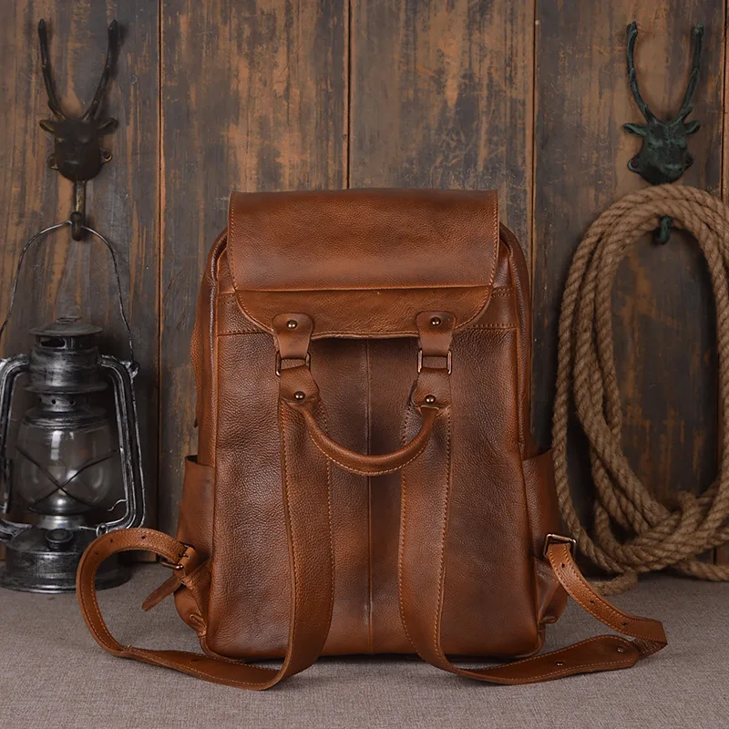 Vintage Laptop100% Genuine Leather Backpacks for School Bags Men Travel Leisure Backpacks Retro Cas
